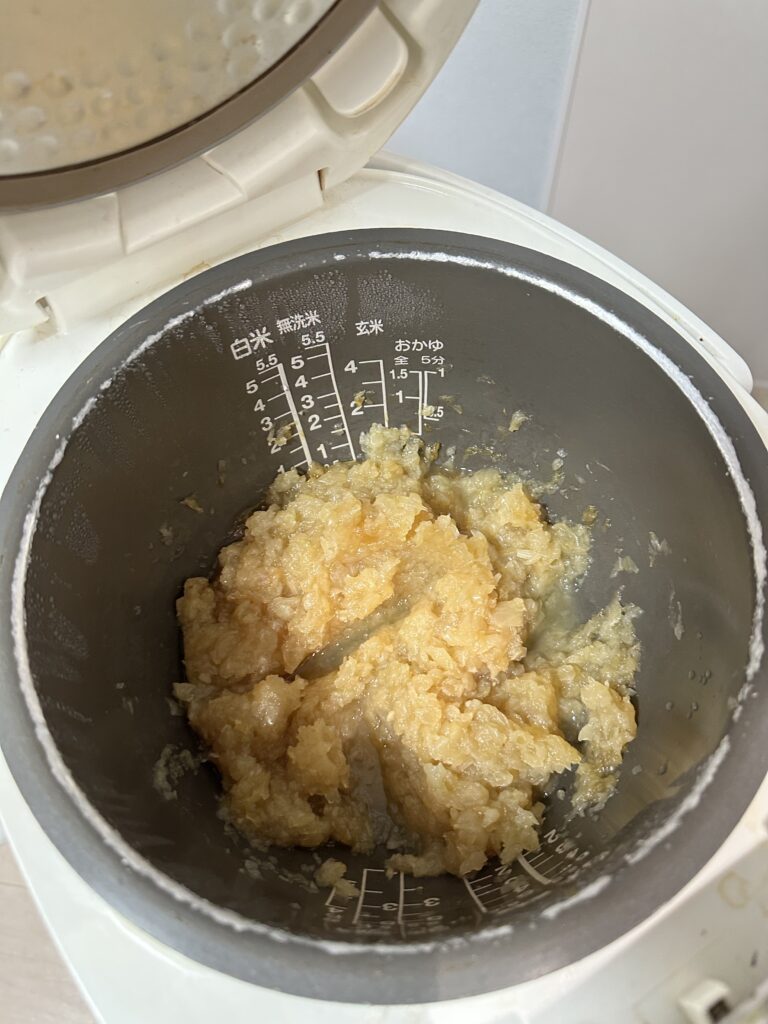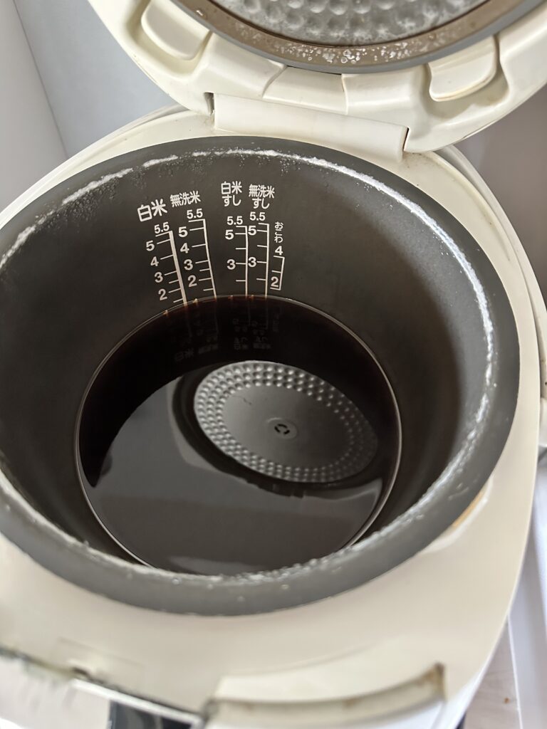 炊飯ボタン1回では、香ばしい香りもない。もう少し煮詰めたほうが良さそう